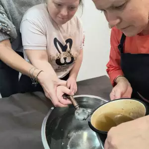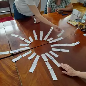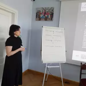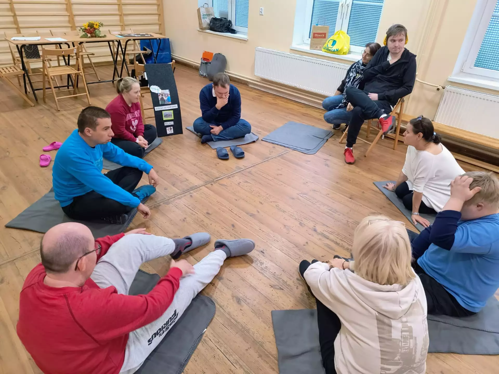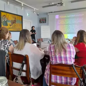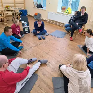 Odrębną, niezwykle cenioną przez rodziców formą zajęć zaplanowaną i zrealizowaną w roku 2024 w ramach projektu „ Jestem społeczny, bo się komunikuję i jestem aktywny” była „Szkoła dla Rodziców i Opiekunów Osób z Niepełnosprawnością – warsztaty doskonalące kompetencje wychowawcze”, prowadzone przez psychologa, który jest jednocześnie rodzicem dorosłej osoby z niepełnosprawnością. Celem zajęć było poszerzenie kompetencji wychowawczych uczestników, a poprzez to pełniejsze poznanie i lepsze zaspokajanie potrzeb dzieci i osób dorosłych z niepełnosprawnością. Poruszone zagadnienia dotyczyły m.in. potrzeb, komunikacji, granic i norm w wychowaniu, zachęcania dziecka do współpracy i do samodzielności, równowagi pomiędzy miłością i rehabilitacją, wpisywania dziecka w role, sytuacji rodzeństwa. Zajęcia odbywały się w 2 grupach warsztatowych. Po każdych zajęciach grupowych w czasie kolejnej godziny uczestnicy mieli możliwość skorzystania z indywidualnych konsultacji z psychologiem. Miejscem zajęć była klimatyczna sala edukacyjna Muzeum Pałacu Saskiego w Kutnie. Ostatnie spotkanie zgromadziło wszystkich uczestniczących w zajęciach. W jego trakcie dzięki życzliwości Dyrekcji i pracowników Muzeum Pałac Saski w Kutnie beneficjenci zadania mieli możliwość zwiedzenia muzealnych wnętrz z przewodnikiem.